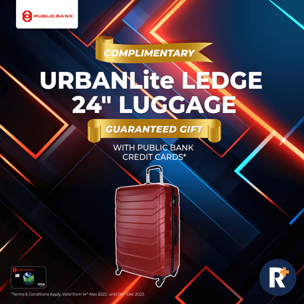 Get a guaranteed URBANLite Ledge 24” when you apply for a Public Bank credit card this week. Travel in style with this sleek luggage piece, ideal for your next journey. Its smooth-rolling wheels and durable design ensure ease of travel while keeping your belongings safe.