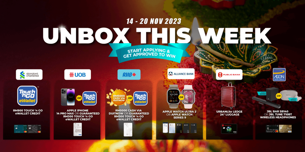 For those who are new to this campaign, Unbox This Week is a weekly event where we present to you fantastic weekly flash deals from our featured bank partners. All you need to do is apply for selected credit cards from these banks of the week through RinggitPlus and you’ll take home some great prizes.
