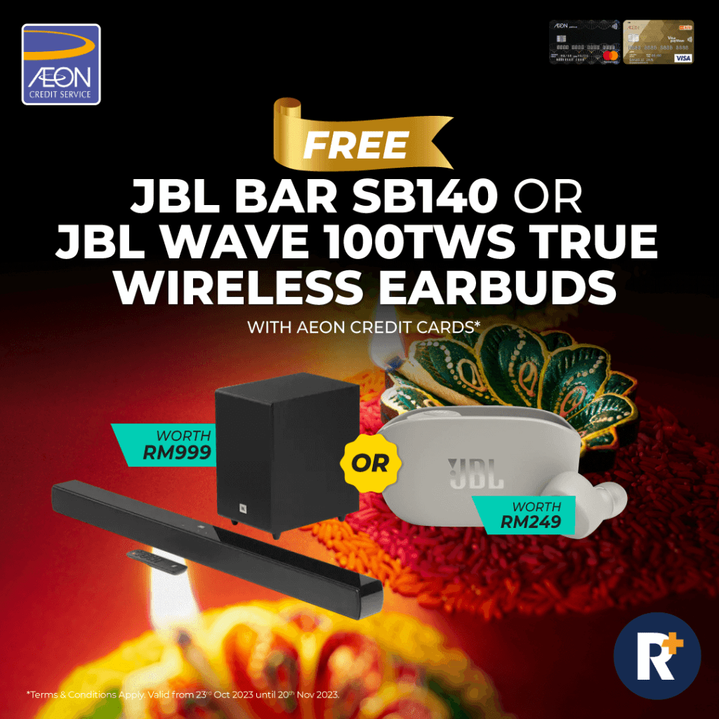 Meanwhile, the JBL Wave 100TWS is guaranteed to be yours when you apply for an AEON Gold Card or AEON Platinum Card. Easily control your sound trigger voice assistants with this comfortably designed pair of wireless earbuds.