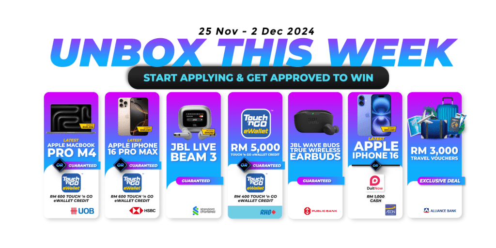 Unbox this week is back again with some of the most anticipated prizes ever given away! Win the latest Apple iPhone 16 Pro Max, MacBook Pro M4, or even walk away with RM3,000 Travel Vouchers and more when you apply for a credit card via RinggitPlus.