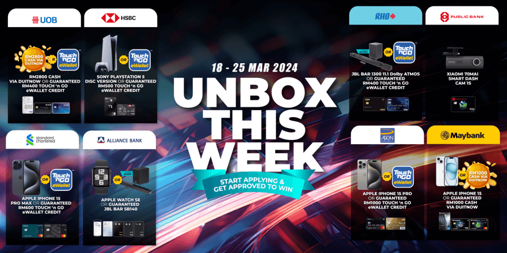 For those who are new to this campaign, Unbox This Week is a weekly event where we present to you fantastic weekly flash deals from our featured bank partners. All you need to do is apply for selected credit cards from these banks of the week through RinggitPlus and you’ll take home some great prizes.
