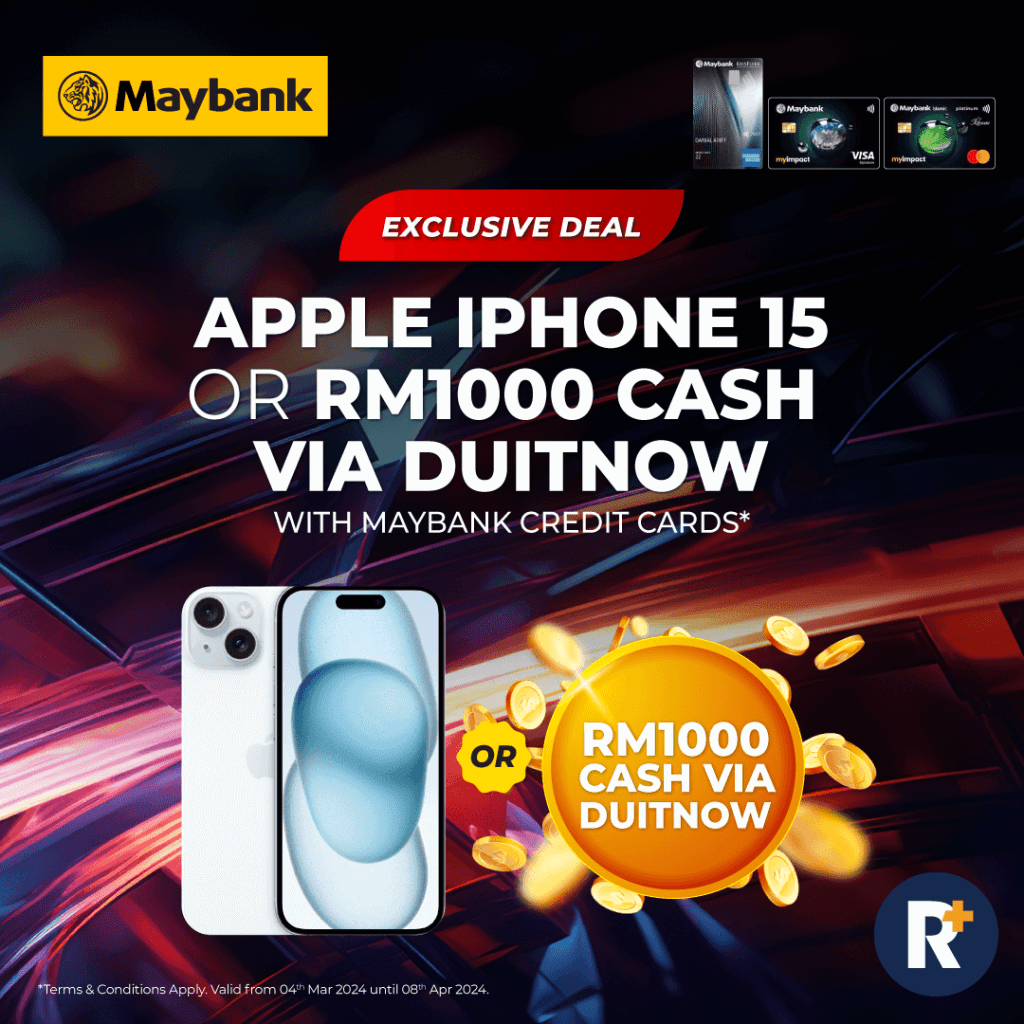 Apply for a Maybank Credit Card and you could win the iPhone 15 or RM1,000 cash today!