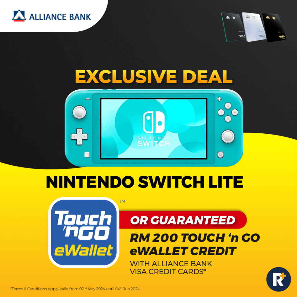 Didn’t win the Nintendo Switch Lite? You’ll still be guaranteed RM200 in TNG eWallet Credit when you apply for an Alliance Bank Credit Card with Balance Transfer, or RM100 in TNG eWallet Credit if you apply for an Alliance Bank Visa Credit Card without Balance Transfer.