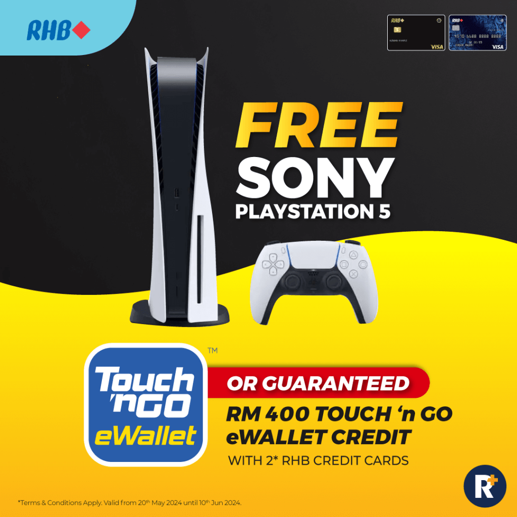 Apply for an RHB Credit Card today for a chance to take home the Sony PlayStation 5, featuring an extensive game library, including popular PlayStation 4 favourites and thrilling new PS5 exclusives, making it the ideal console for family entertainment and catering to all gamers.
