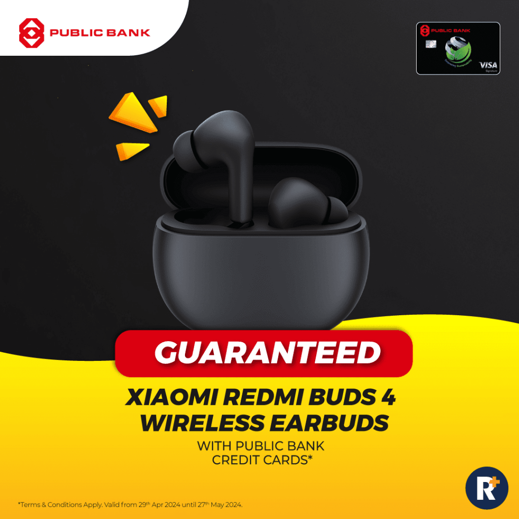 Apply for a Public Bank Credit Card today and get a guaranteed pair of Xiaomi Redmi Buds 4. Designed for comfort, these lightweight earbuds are perfect for your workouts, daily commutes, or everyday listening. Experience seamless music playback and call handling with their intuitive touch controls.