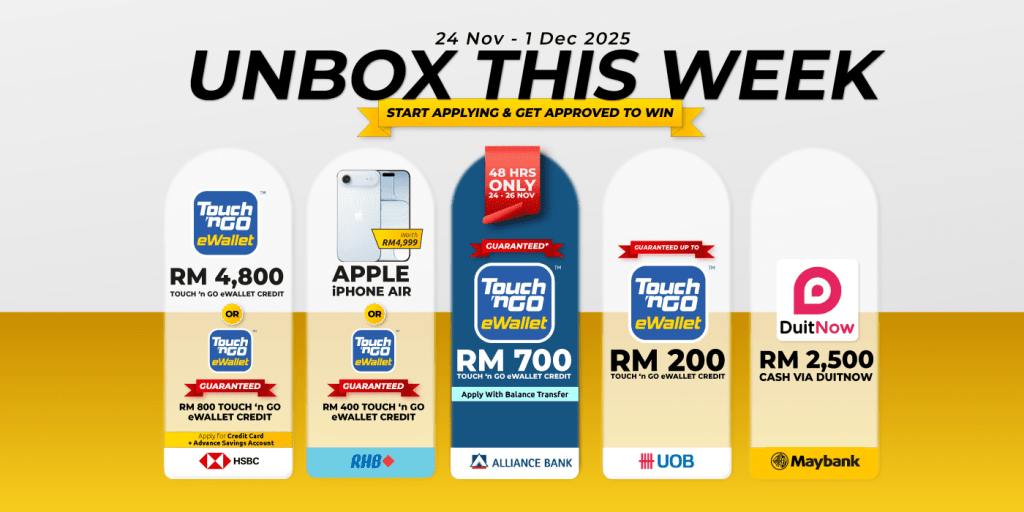 For those who are new to this campaign, Unbox This Week is a weekly event where we present to you fantastic weekly flash deals from our featured bank partners. All you need to do is apply for selected credit cards from these banks of the week through RinggitPlus and you’ll take home some great prizes.