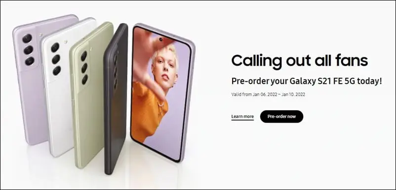 Finally, Samsung said that pre-ordered Samsung Galaxy S21 FE 5G phones will start shipping on 11 January 2022 onwards.