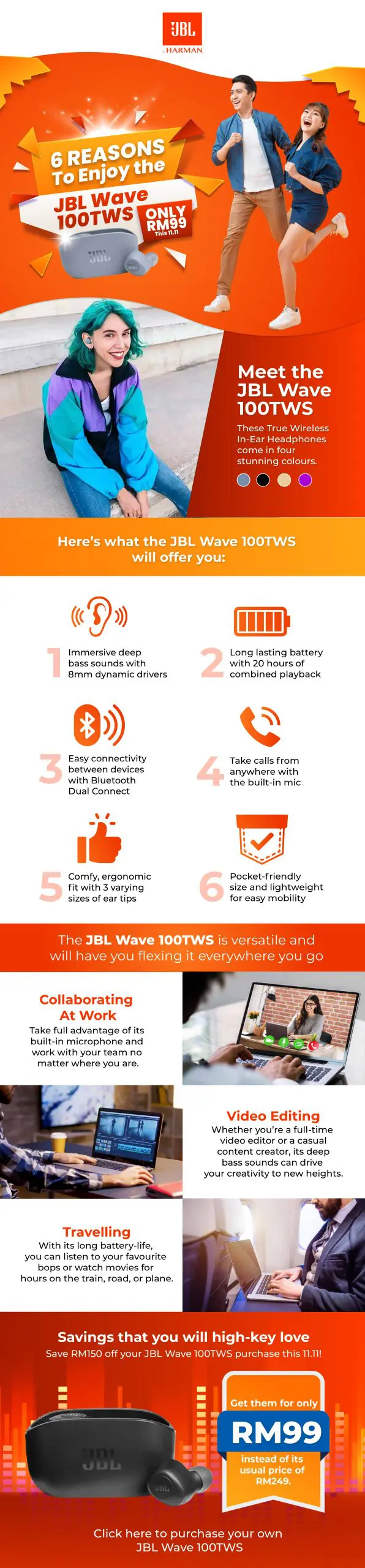 TL;DR: You can get it for only RM99 instead of the usual price of RM249 this 11.11.Read on to learn more about the JBL Wave 100TWS.