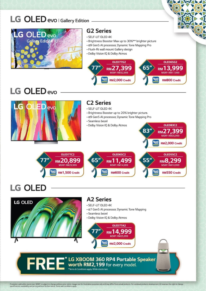 Take home a FREE LG XBOOM 360 RP4 Portable Speaker worth RM2,199 when you purchase selected OLED TVs from 4 April to 4 June 2023.