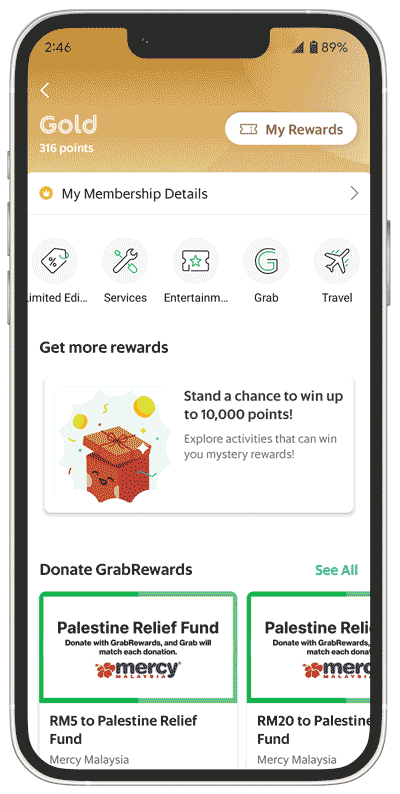 By accumulating more GrabRewards points through GrabCar and other Grab services, you can reduce your overall expenses by using your rewards to redeem a free ride, meal, or grocery order. These savings can add up quickly—offering a simple way to ease your everyday expenses.