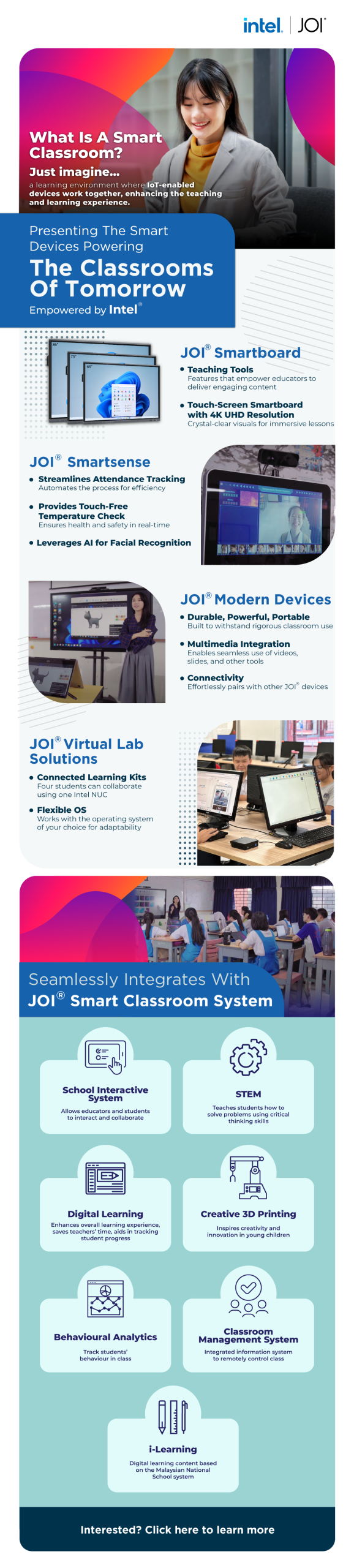 Smart Classrooms represent the future of education, and JOI is at the forefront of this transformation. By integrating high-performance processors, AI-driven tools, and edge computing capabilities, Intel® ensures these classrooms are sustainable and future-proof, preparing the next generation for the challenges of tomorrow.