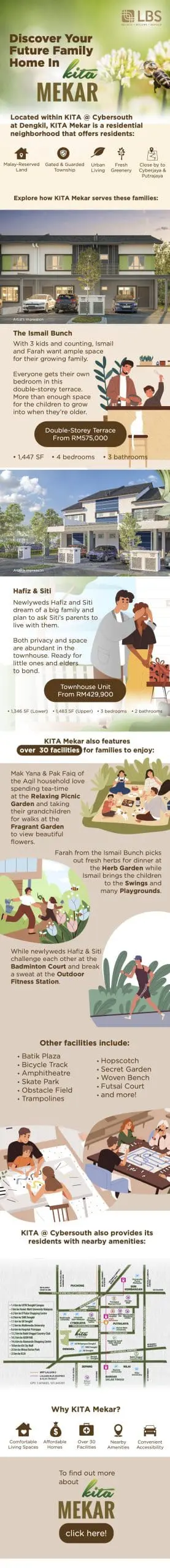 In order to comply with these unique quirks, a family needs a home that meets both their current needs and future plans, such as KITA Mekar at KITA @ Cybersouth. A residential neighbourhood that’s ideal for young and growing families who are looking for their dream home. Situated in Dengkil, KITA Mekar would greatly benefit those working at Cyberjaya and Putrajaya who love to be able to send their children to nearby schools, shop at popular malls, and more.