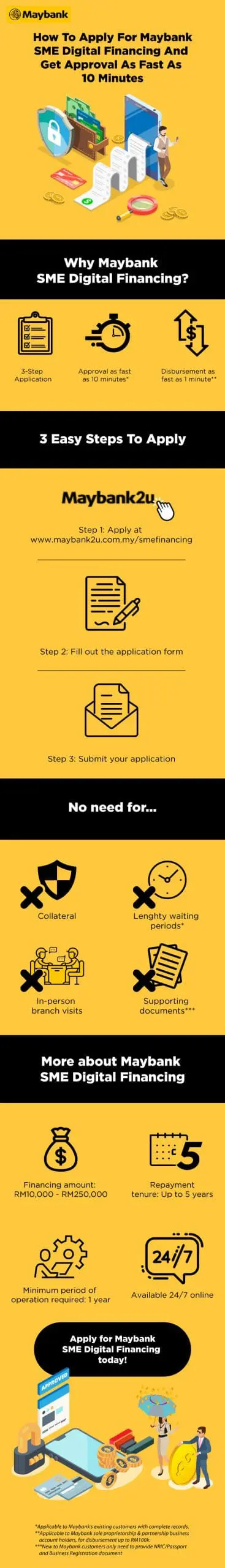 Take a look at this info graphic below to see exactly how easy it is to apply for Maybank SME Digital Financing via https://www.maybank2u.com.my/smefinancing.