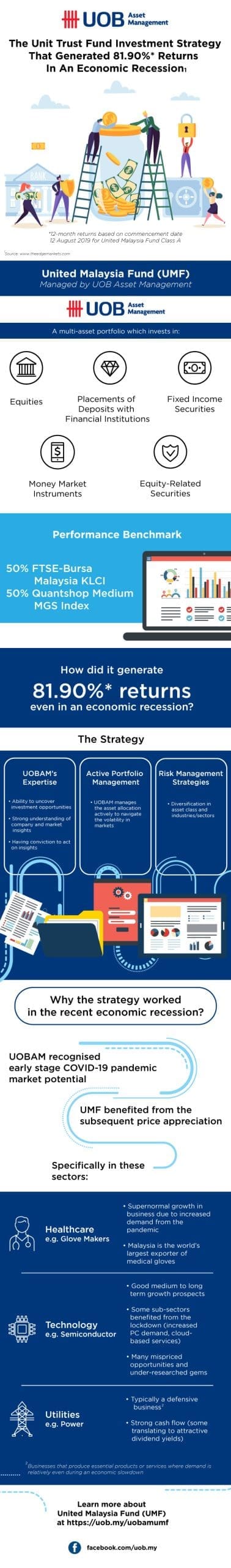 Some unit trust funds have managed to rally alongside the swift recovery in the stock markets. In particular, the United Malaysia Fund (UMF) managed by UOB Asset Management (UOBAM) Malaysia, saw outstanding returns of 81.90%* for the past 12 months. In this article, we take a look at what made it possible for UMF to deliver in the current global pandemic.