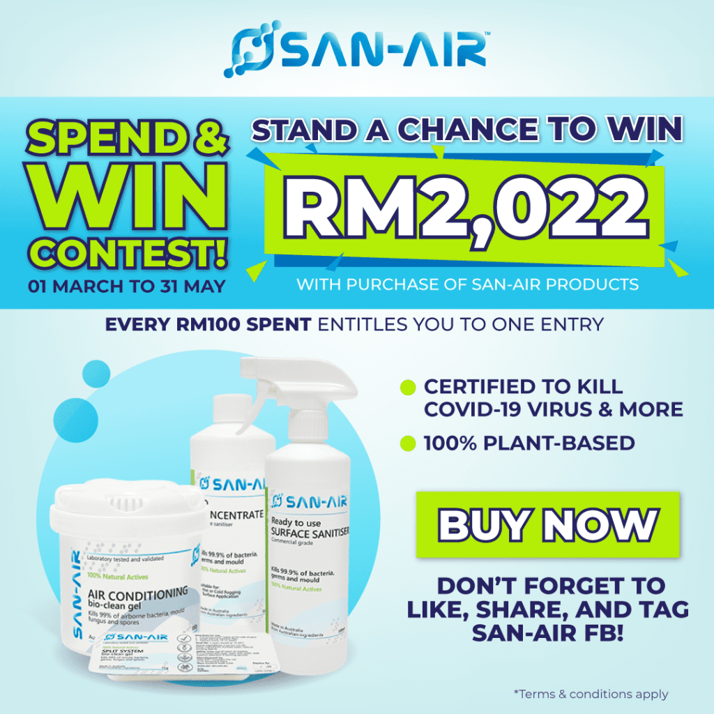 That’s not all! San-Air is also having a spend and win contest where you stand a chance to WIN RM2,022 cash prize with a purchase of San-Air products! It’s really easy to join with just two steps.