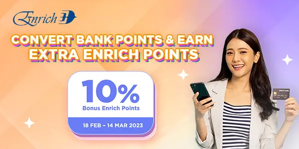 Malaysia Airlines is back once again with its Bank Conversion campaign! Convert your bank points from participating banks to Enrich Points with 10% bonus points, and you’ll be able to redeem flights, hotel stays, and more for a limited time only. Better yet, you’ll be able to use your Enrich Points during the upcoming Take Off Redemption Deals happening on the 9th March 2023.