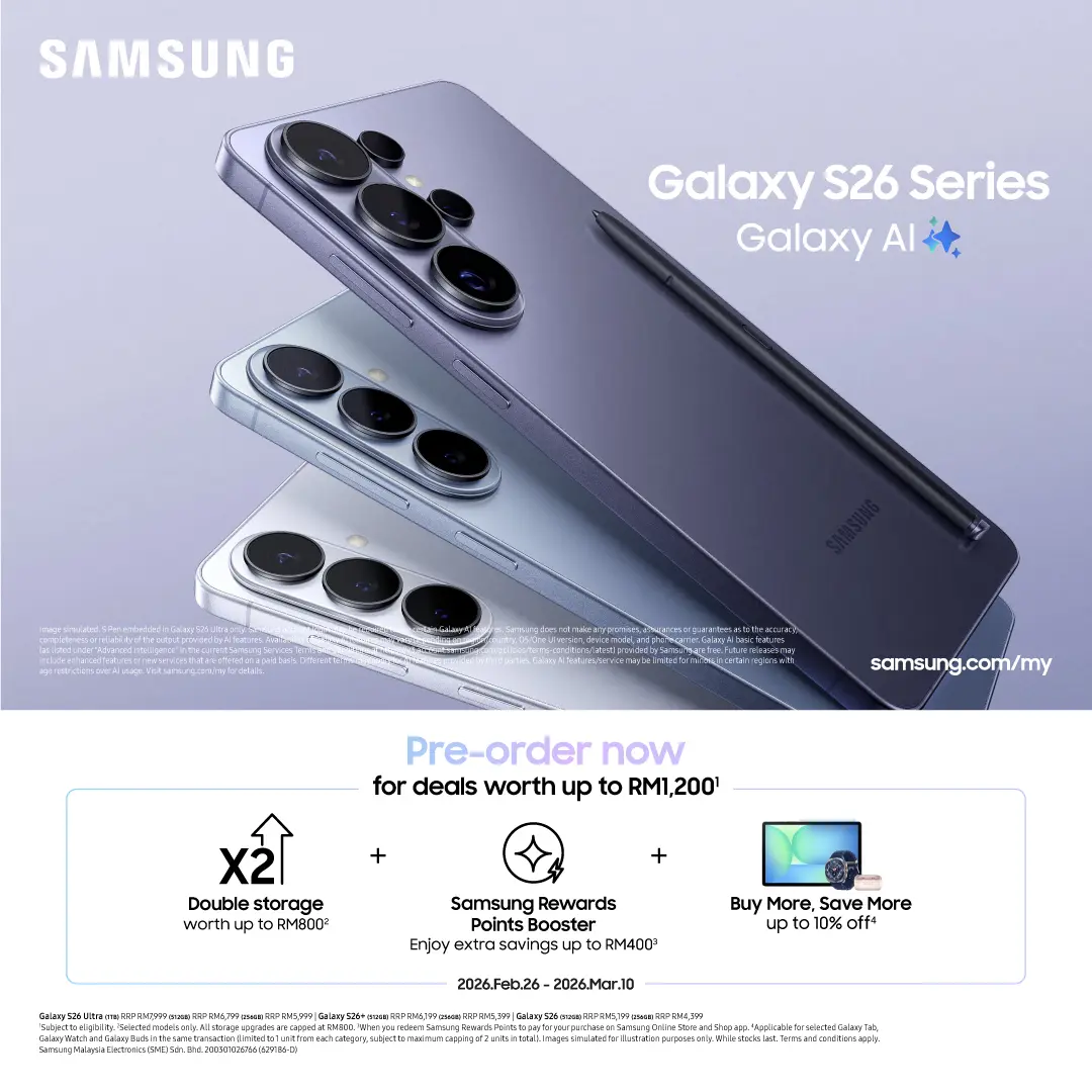 Grab your Galaxy S26 before 10 March to lock in up to RM1,200 in savings! Pre-orders are open now through the Samsung Online Store.