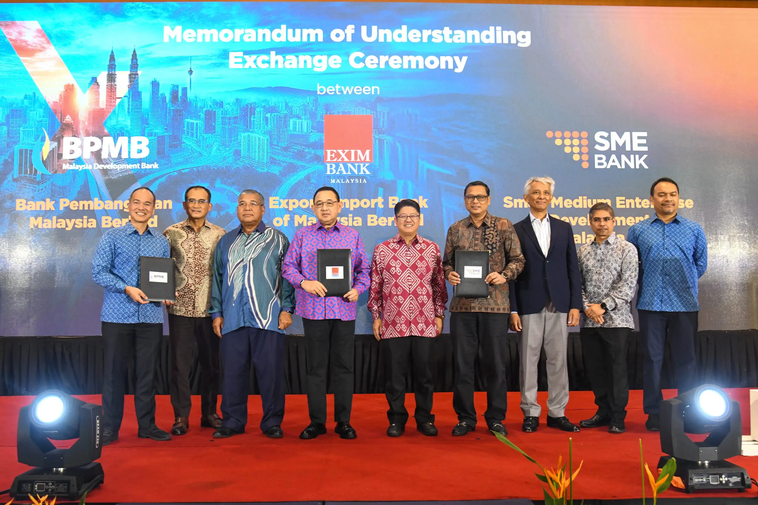 A tripartite collaboration was formalised between SME Bank, Export-Import Bank of Malaysia Berhad (EXIM Bank), and Bank Pembangunan Malaysia Berhad (BPMB). This partnership offers a Trade Credit Takaful Facility, which combines financing from SME Bank with trade credit protection from EXIM Bank.