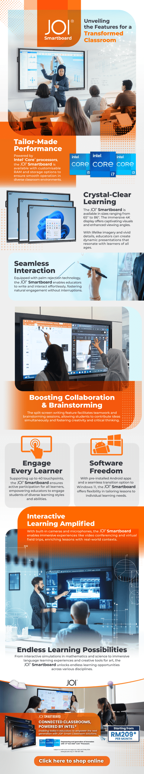 The JOI® Smartboard goes beyond the confines of traditional teaching methods, empowering educators to create dynamic, interactive, and personalised learning experiences that inspire a lifelong love of learning. With its innovative features and transformative capabilities, the Smartboard is propelling education into the digital age and shaping the future of learning. Explore the possibilities to transform your classroom and embark on a journey of transformation with the JOI® Smartboard today!