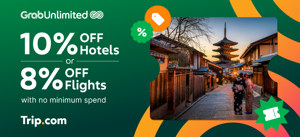 Sign up for GrabUnlimited today and start saving on your next flight or hotel booking with Trip.com. Travel smarter, save more, and make your money go further.