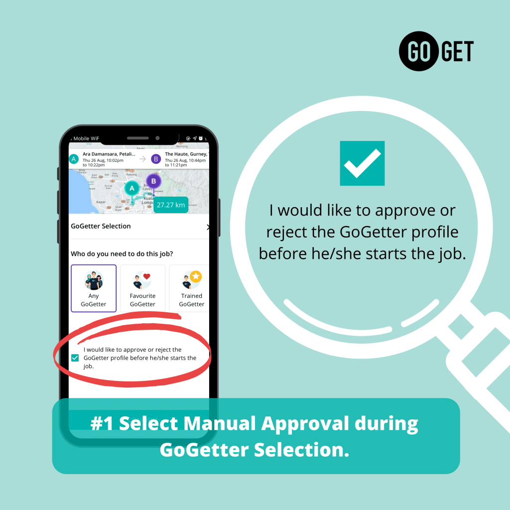 Before accepting a GoGetter, users can also request to manually approve a GoGetter for further screening and peace of mind. Users can interview their GoGetters face to face, conduct phone interviews, and also request for their GoGetter’s resume.