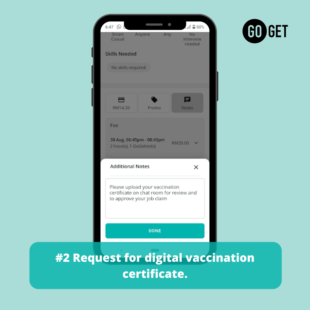Apart from making sure that GoGetters are qualified and verified, businesses may also have peace of mind in getting fully vaccinated GoGetters and have absolute control over verifying it.