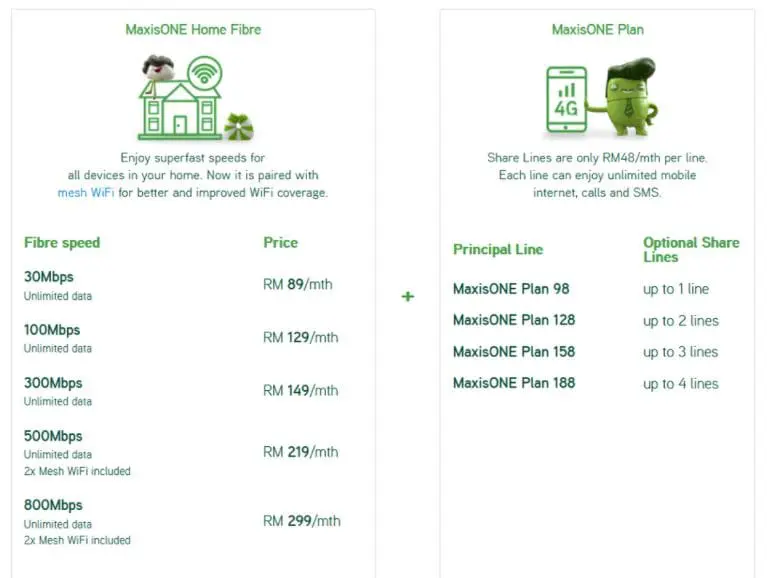 From this, you can see that if you were to choose a MaxisONE Prime package comparative to the new Maxis Family Plan (one home broadband at 30 Mbps + four mobile lines), you will need to pay a total of RM391 instead (RM89 for home broadband + RM158 for MaxisONE Plan + RM48*3 for 3 share lines). With the new Family Plan now priced at just RM299, you are able to save up to 23.5% – which is quite a decent deal!