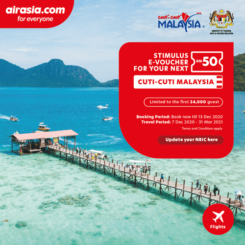 AirAsia has announced that its RM50 e-vouchers, which are distributed in conjunction with the Cuti-Cuti Malaysia campaign, are now redeemable via its official website.